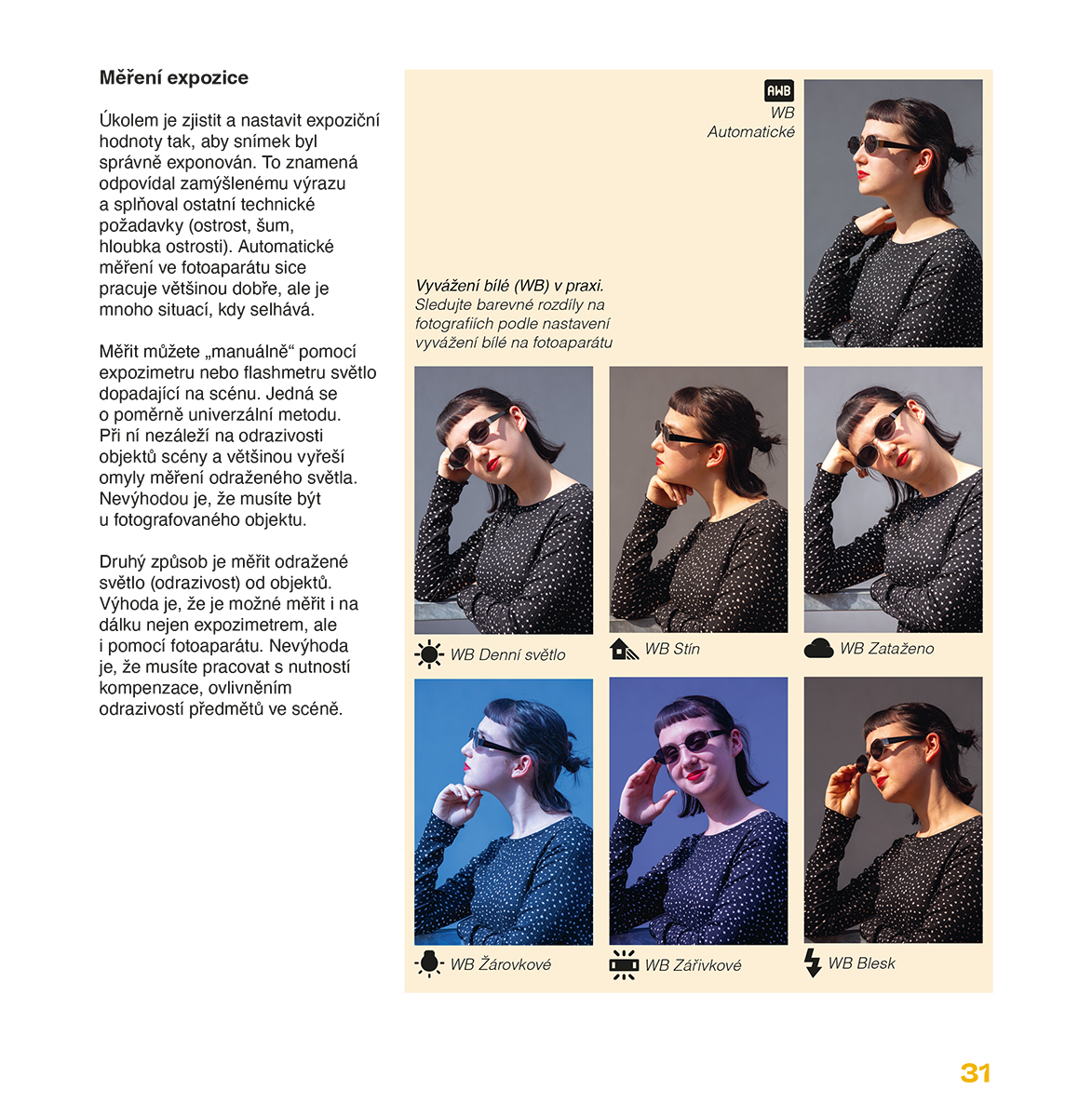 Na 134 stranách najdete více než 200 fotografií, ukázek a nákresů, které pomáhají pochopit principy vizuálně, ne jen teoreticky. Praktická kroužková vazba umožňuje pohodlné používání při práci, otevřené stránky se samy nezavírají a kniha může ležet vedle vás přímo při fotografování.