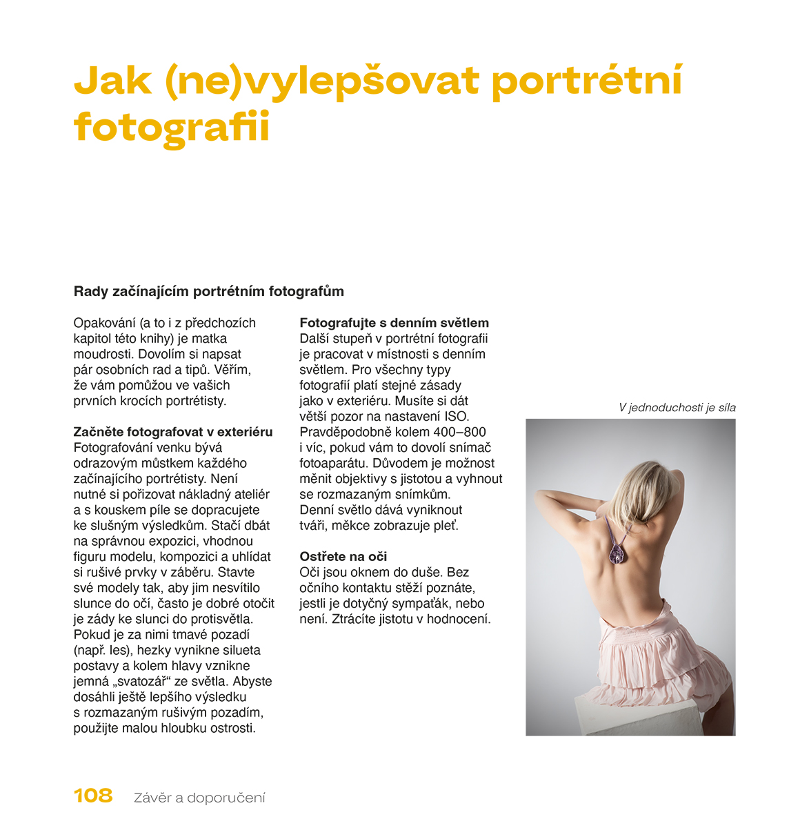 Přínosné pro celkové vyznění knihy je kapitola vizážistky Lucie Jánské věnovaná make-upu. Publikaci uzavírá část věnovaná ocenění práce fotografa. Doplnění knihy o slovník s vysvětlení jednotlivých pojmů, rejstřík a doporučenou literaturu podtrhuje profesionální charakter celé knihy.